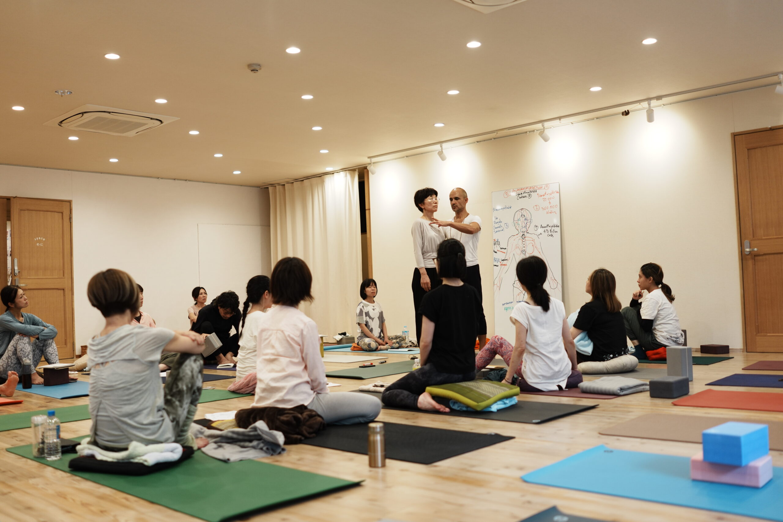 アンドレ先生が蒔いてくれている、このすばらしいヨガの種を、ぼくたちも日本で育てていきたいと思い、アンドレ先生の教えをベースにした「ハタ・ラジャ・プラクティス」のクラスを、ぼくと通訳のみどりさんの2人で、spaceわにで定期開催していくことにしました。